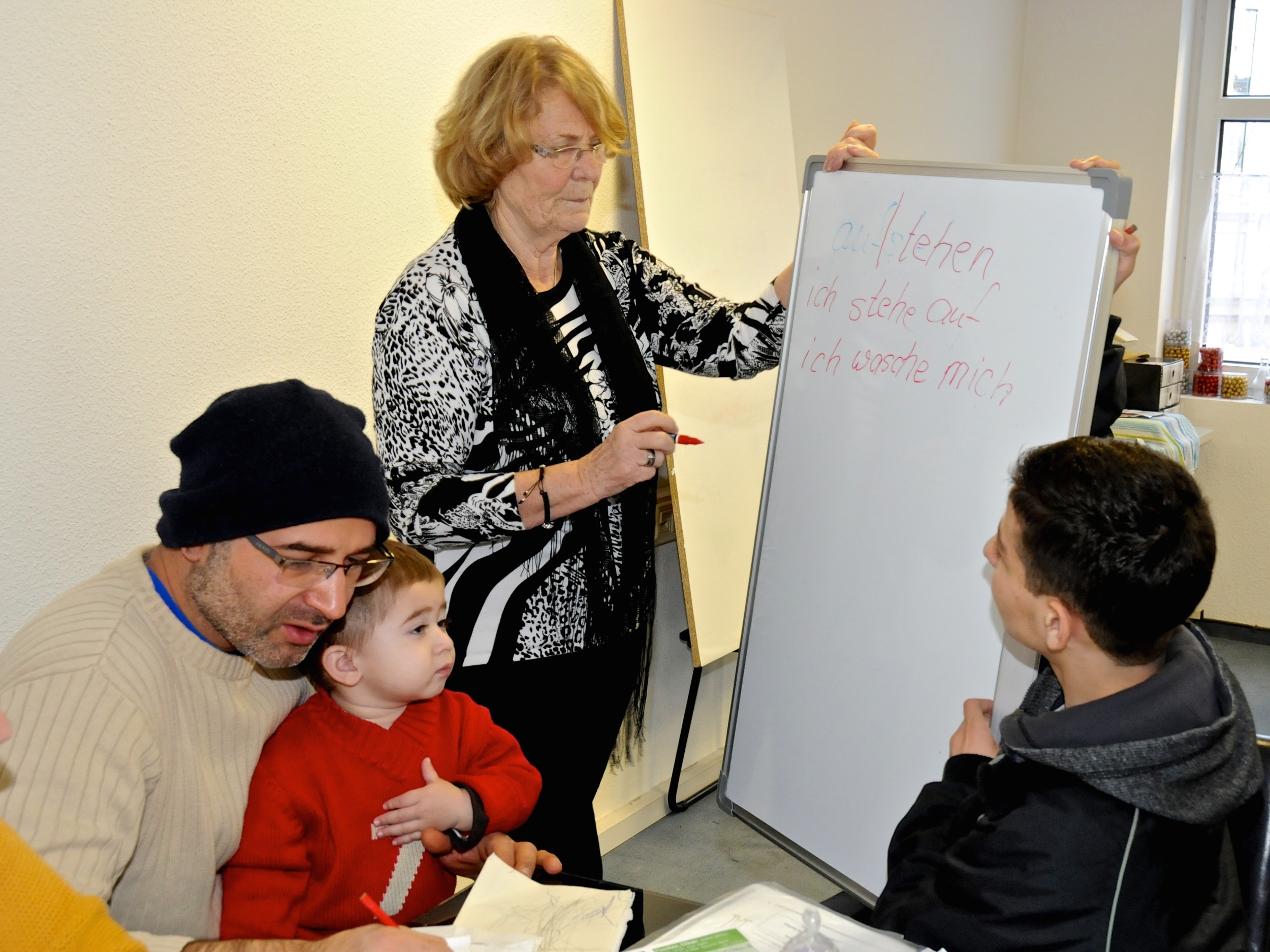 Seit Dezember 2015 finden die Sprachkurse in den neuen Initiativräumen in der Schalaunischen Straße 33 statt. Hier unterrichten unsere ehrenamtlichen Lehrerinnen Ellen, Karin und Erika die syrischen Familien. Aber nicht nur der Sprachunterricht, sondern auch die Vermittlung von Werten und Regeln stehen auf dem täglichen Stundenplan.